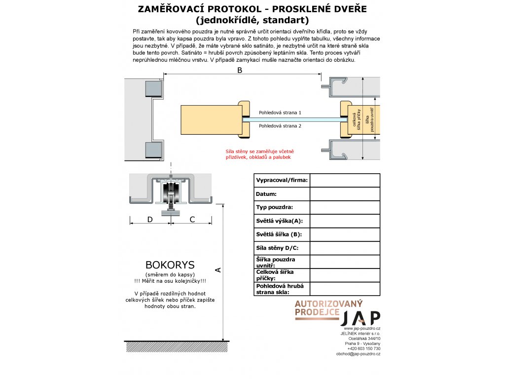 Pro správné objednání dveřního kompletu vás žádáme o vyplnění zaměřovacího protokolu a zašlete po objednání. Protokol zkontrolujeme, že je vše v pořádku a potvrdíme Vám výrobu.